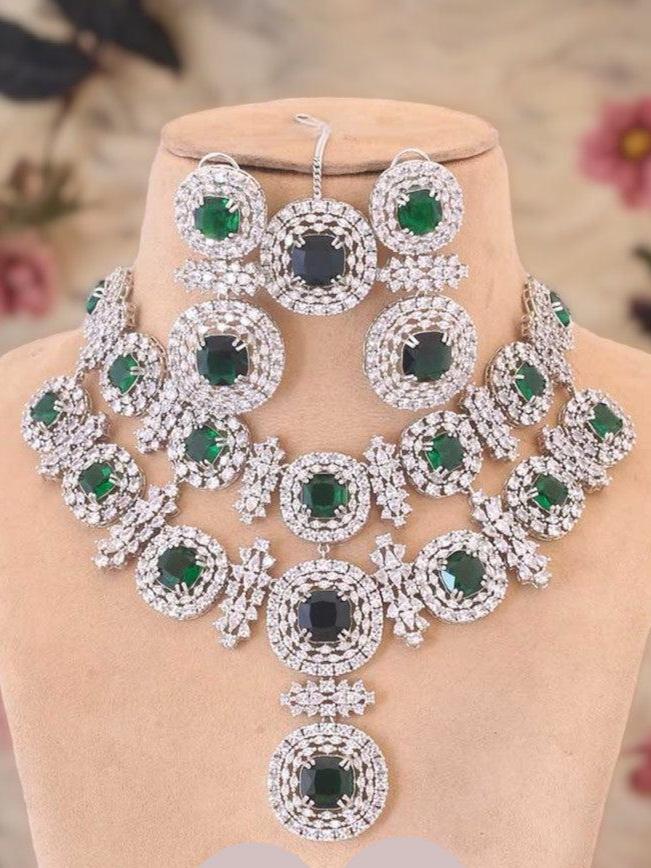 Premium quality american diamond set with superb gemstones crafted for festive wedding and your upcoming special occasions.
