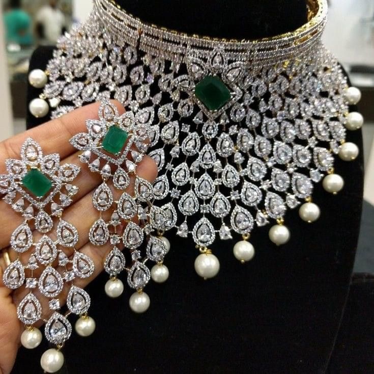 Enhance any outfit with the Maria Designed Diamond Chocker Set. This elegant set features a stunning choker necklace and matching earrings, both adorned with sparkling diamonds. Perfect for special occasions or adding a touch of glamour to your everyday look. Elevate your style with this luxurious set.