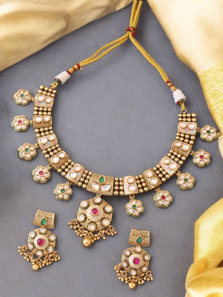 Let your rajwadi necklace be the star of the show. Pair it with simpler clothing like a silk saree or a flowing kurta to make the intricate details shine.
